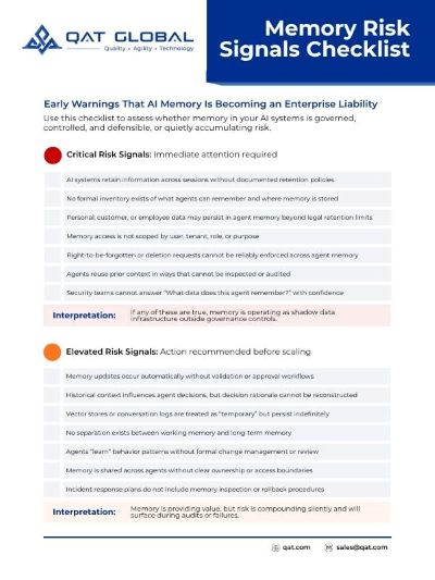 Memory introduces enterprise risk that rarely appears immediately. These risks accumulate quietly in production environments.
